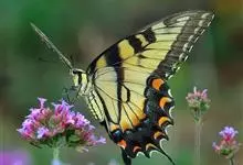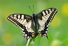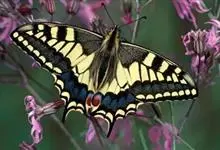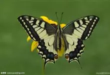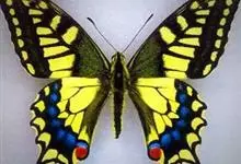 金凤蝶,是鳞翅目凤蝶科凤蝶属动物。金凤蝶为中型凤蝶,翅展70-84毫米,翅背面底色黑褐色,翅脉黑色,翅室具黄斑;前翅背面基部呈暗黄色,亚外缘为黑色,内具一列小黄斑;后翅背面亚外缘区具黑宽边,…全部>>