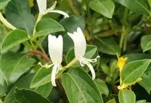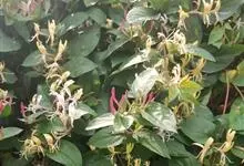 山银花在华南地区野外山林生长。木质藤本,长2~5m。树皮黄褐色渐次变为白色,嫩时有短柔毛。叶对生,卵圆形至椭圆形,长4~8cm,宽3.5~5cm,上面绿色,主脉上有短疏毛,下面带灰白色,密生白色短柔…全部>>