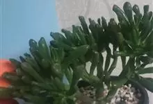 筒叶花月,是景天科青锁龙属的多年生草本植物。植株多分株,灌木状,茎较粗壮,圆柱形,表皮灰褐色;叶片肉质,互生,呈圆筒状,簇生于茎或分枝顶端,叶端呈斜截形,截面为椭圆形;花呈星状,淡白色;花期秋季。…全部>>