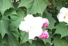 木芙蓉,锦葵科木槿属落叶灌木或小乔木。小枝上有细绒毛;叶片为卵状心形,托叶为披针形,常早落;花单生,花萼为钟形,花冠初为白色或淡红色,后逐渐变为深红色;果实为扁球形,有淡黄色的毛附着。花期8到10月。…全部>>
