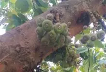 大果榕是桑科榕属的小乔木,株高可达10米;幼枝被柔毛;叶互生,宽卵状心形或近圆形;雄花无梗、匙形、花丝长,雌花生于雌株榕果内,子房白色;榕果簇生于树干基部或老茎短枝上、扁球形或陀螺形,…全部>>