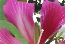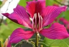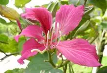 红花羊蹄甲,为豆科羊蹄甲属植物,别名艳紫荆、洋紫荆。半落叶乔木,高达了~10 m,叶草质,近圆形或阔心形,长8~13cm顶端开裂至全叶长1/4~13,裂片顶端圆。总状花序顶生或腋生,花冠紫红色,…全部>>