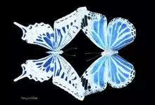 天堂凤蝶翅展可达105mm。前、后翅自基角至后缘约1/2~2/3端为纯净的宝蓝色,后角至后缘1/3~1/2端为黑色,后翅有黑色的尾突。翅背面为棕褐色。全部>>