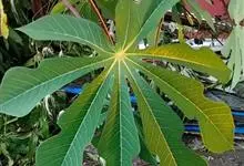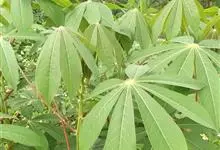 木薯,为大戟科木薯属的一种直立灌木,又名木番薯、树薯。木薯高1.5-3米;块根圆柱状。叶纸质,轮廓近圆形;裂片倒披针形至狭椭圆形;托叶三角状披针形。圆锥花序顶生或腋生,花萼带紫红色且有白粉霜。…全部>>
