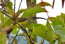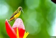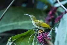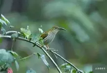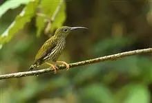 纹背捕蛛鸟:为太阳鸟科捕蛛鸟属的鸟类。是太阳鸟科中体型较大的一种,体重25-45克,体长160-210毫米。嘴粗长而尖且向下弯曲。上体橄榄黄色具黑色中央斑纹。下体淡黄白色满布黑色纵纹,尾具黑色次端斑。…全部>>