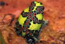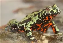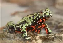 东方铃蟾是盘舌蟾科、铃蟾属两栖动物。体长36-48毫米左右头扁平,吻圆,前、后肢短,皮肤粗糙,刺黑色,背部呈灰棕色,或背为绿色杂以不规则的黑色斑点,腹面有花斑,为黑色与朱红色或桔黄色。雄性前肢较粗壮,…全部>>