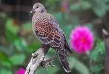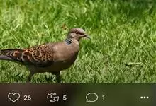 山斑鸠,是鸽形目鸽鸠科斑鸠属鸟类,又名金背斑鸠、棕背斑鸠、山鸠、金背鸠、麒麟斑、麒麟鸠、东方斑鸠、绿斑鸠、山鸽子。山斑鸠颈侧具明显黑白色条纹的块状斑,上体深褐色、具扇贝状斑纹,羽缘棕色,尾羽近黑色,…全部>>