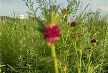 绛车轴草是豆科车轴草属的一年生草本植物。绛车轴草茎直立或上升,粗壮,被长柔毛,具纵棱;掌状三出复叶,托叶椭圆形,小叶宽倒卵形或近圆形;花序圆筒状,顶生;荚果卵圆形,种子褐色;花果期5-7月。…全部>>