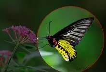 金裳凤蝶是凤蝶科、裳凤蝶属的动物。金裳凤蝶身体呈黑色,头、颈和胸侧有红毛,腹部有黑黄两色相间条纹,雄蝶前翅黑色,具黑天鹅绒光泽,各脉两侧灰白色,后翅金黄色,各室外缘有等腰三角形黑斑1枚,斑内侧有晕,…全部>>