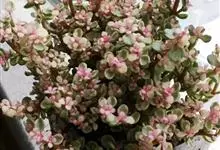 雅乐之舞是马齿苋科马齿苋属多年生肉质灌木植物。植株较矮,株高3~4米;水平分枝,枝干较细;茎肉质,老茎灰白色,新茎红褐色;叶片肉质,黄白色倒卵形,中间为淡绿色新叶,叶缘还带有粉红色;开淡粉色小花,…全部>>