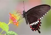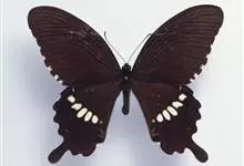 玉斑凤蝶Papilio helenus 别名白纹凤蝶,是凤蝶科凤蝶属美凤蝶亚属大型种类。雌雄同型;体翅皆黑色,后翅正面中室外有3个并列的白色斑,亚外缘有1列模糊的新月形红色斑,…全部>>