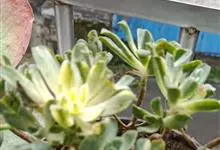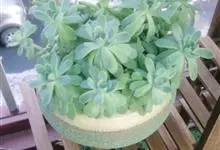 艳日辉是景天科莲花掌属多年生肉质草本植物,也称多浆植物。其原产于大西洋的加那利群岛,是一种旱生植物,不耐寒。叶片长勺形,边缘有锯齿,光照不足时全株绿色,光照充足且温差大时,叶片会变成淡淡的粉红色,…全部>>