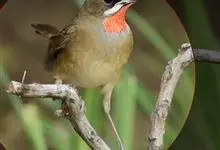 红点颏:是鸟纲、鹟科的鸣禽。又名西伯利亚歌鸲。体长14-17厘米,体重16-27克。雄鸟头部、上体主要为橄榄褐色。眉纹白色。颏部、喉部红色,周围有黑色狭纹。胸部灰色,腹部白色。雌鸟颏部、喉部不呈赤红色,…全部>>