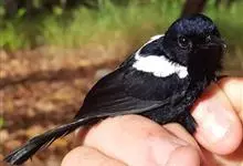 白顶䳭为鹟科、䳭属小型鸟类,体长14-17厘米。雄鸟头顶至后颈白色,头侧、背、两翅、颏和喉黑色,其余体羽白色,中央一对尾羽黑色,基部白色,外侧尾羽白色具黑色端斑。雌鸟上体土褐色。腰和尾上覆羽白色。…全部>>