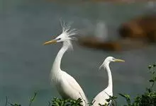 小白鹭:体长52-68厘米,为中型涉禽,全身体羽颇似大、中白鹭,体形纤瘦,全身白色。夏羽枕部有两根细长饰羽,前颈和背着生蓑羽。冬季饰羽及蓑羽脱落。眼先裸皮夏季粉红色,冬季黄绿色。生殖期在枕部有两枚长羽,…全部>>