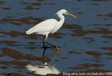 黄嘴白鹭,也叫白老、唐白鹭,珍稀水禽,中型涉禽。体长46-65厘米,体重320-650克。雌雄羽色相似,通体白色。嘴、颈、脚均长。夏季嘴橙黄色,眼线蓝色,脚黑色,…全部>>