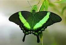 碧翠凤蝶,Papilio bianor Cramer,凤蝶科凤蝶属的一个物种。形态 成虫:翅展90—135 mm。体、翅黑色,满布翠绿色鳞片,在脉纹间更集中,已表现出翠绿带。…全部>>