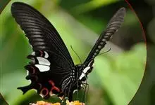 玉斑凤蝶Papilio helenus 别名白纹凤蝶,是凤蝶科凤蝶属美凤蝶亚属大型种类。雌雄同型;体翅皆黑色,后翅正面中室外有3个并列的白色斑,亚外缘有1列模糊的新月形红色斑,…全部>>