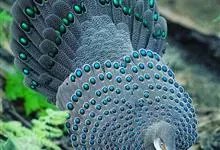 灰孔雀雉:雄鸟体长50-67厘米,体重456-710克;雌鸟体长33-52厘米,体重460-500克。雄鸟全身羽毛黑褐色,…全部>>