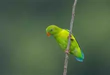 短尾鹦鹉是典型的攀禽,体形小,翅长在90毫米左右;尾较翅短;嘴较细削,其厚度不及嘴峰长度;腰下有朱红色块斑;雄鸟喉部有蓝色块斑。鸟喙强劲有力,喙钩曲,上颌具有可活动关节,喙基部具有腊膜。肌肉质舌厚。…全部>>
