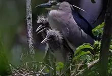 夜鹭是中型涉禽,体长46-60厘米。体较粗胖,颈较短;嘴尖细,微向下曲,黑色;胫裸出部分较少,脚和趾黄色;头顶至背黑绿色而具金属光泽;上体余部灰色;下体白色;枕部披有2-3枚长带状白色饰羽,下垂至背上,…全部>>