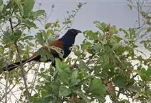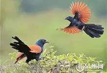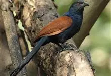 褐翅鸦鹃,是鹃形目鸦鹃科鸦鹃属的鸟类。褐翅鸦鹃的身体为黑色;头颈和胸带蓝紫色金属光泽并具黑亮的羽干纹,下胸至腹部泛金属绿光泽;两翼和肩部为棕栗色,外侧飞羽具暗色羽端,尾羽闪铜绿色光泽;虹膜赤红色,…全部>>