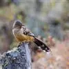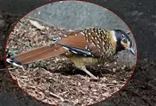 大噪鹛:中型鸟类,体长32-36厘米。额至头顶黑褐色,背栗褐色满杂以白色斑点,斑点前缘或四周还围有黑色。初级覆羽、大覆羽和初级飞羽具白色端斑。尾特长,均具黑色亚端斑和白色端斑。颏、喉棕褐色,…全部>>