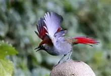 赤尾噪鹛中型鸟类,体长24~28厘米。头顶至后颈红棕色,两翅和尾鲜红色,眼先、眉纹、颊、颏和喉黑色,眼后有一灰色块斑。其余上下体羽大都暗灰或橄榄灰色。特征极明显,特别是通过鲜红色的头顶、翅和尾。…全部>>