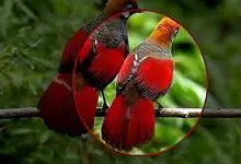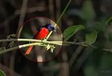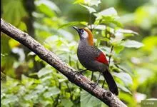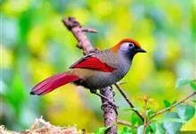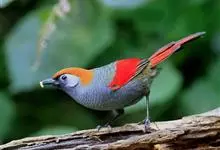 赤尾噪鹛中型鸟类,体长24~28厘米。头顶至后颈红棕色,两翅和尾鲜红色,眼先、眉纹、颊、颏和喉黑色,眼后有一灰色块斑。其余上下体羽大都暗灰或橄榄灰色。特征极明显,特别是通过鲜红色的头顶、翅和尾。…全部>>