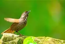 弄岗穗鹛隶属于雀形目画眉科穗鹛属,脚强健,善跳跃,不善飞翔,喜结群活动。全身大部分为深褐色,在森林下层活动觅食,觅食的地方因季节的变化而变化。…全部>>