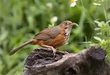 长嘴钩嘴鹛是画眉科、钩嘴鹛属中型鸟类,体长24-27厘米。嘴粗壮、长而尖且向下弯曲。上体橄榄褐色或橄榄棕褐色,颊和耳羽灰褐色,其后有一栗红色斑,耳羽上面从眼后开始有一长的白色纵纹沿颈侧向下。下体白色,…全部>>