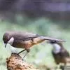 大噪鹛:中型鸟类,体长32-36厘米。额至头顶黑褐色,背栗褐色满杂以白色斑点,斑点前缘或四周还围有黑色。初级覆羽、大覆羽和初级飞羽具白色端斑。尾特长,均具黑色亚端斑和白色端斑。颏、喉棕褐色,…全部>>