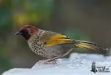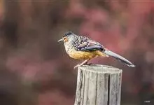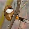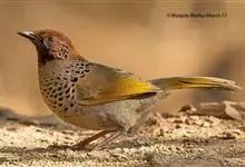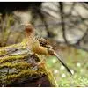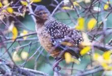 大噪鹛:中型鸟类,体长32-36厘米。额至头顶黑褐色,背栗褐色满杂以白色斑点,斑点前缘或四周还围有黑色。初级覆羽、大覆羽和初级飞羽具白色端斑。尾特长,均具黑色亚端斑和白色端斑。颏、喉棕褐色,…全部>>