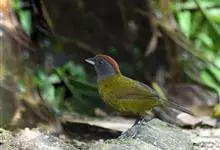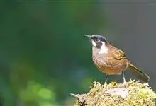 栗颈噪鹛是噪眉科、噪鹛属中型鸟类,体长22-25厘米。头顶至枕暗石板灰色,前额、头侧、颏、喉至上胸黑色,耳后至颈侧有一栗棕色块斑,在头后颈侧极为醒目。上体暗橄榄褐色,两翅黑褐色,初级飞羽外翈沾灰。…全部>>