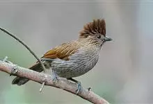 白冠噪鹛是画眉科噪鹛属的鸟类。是中型鸟类,体长28-32厘米。常见于常绿阔叶林、杂有竹丛的树林以及林下灌丛。该物种的模式产地在喜马拉雅山脉西部。主要以金龟甲、步行虫、甲虫、蝉、鳞翅目幼虫等昆虫为食,…全部>>
