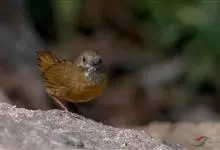 白腹幽鹛,是画眉科幽鹛属鸟类,共有4亚种。雕雄羽色相似。 上体从头到尾包括两题表面概为微椎褐色,两翅和尾沾更多红色。眼先和颚上灰褐色,耳覆羽褐色具族色羽轴纹,颈与背同色。额、喉白色具矢状黑斑,…全部>>