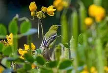 黑翅雀鹎:体重14-19克,体长11.5-16厘米。是树栖性绿色小鸟,外形与叶鹎相似,下体黄色。鸟喙直,翼长而尖,总体羽毛是绿色和黄色相结合,翼上具两道明显近白色横纹,翼近黑而羽缘白。…全部>>