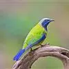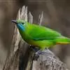 橙腹叶鹎体形大小和金额叶鹎相似,体长16~20厘米。额至后颈黄绿色,其余上体绿色,小覆羽亮钴蓝色,形成明显的肩斑。颏、喉、上胸黑色具钴蓝色髭纹,其余下体橙色。飞羽和尾羽雄鸟黑色、雌鸟绿色。…全部>>