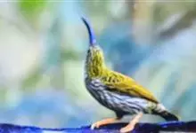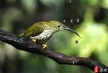 纹背捕蛛鸟:为太阳鸟科捕蛛鸟属的鸟类。是太阳鸟科中体型较大的一种,体重25-45克,体长160-210毫米。嘴粗长而尖且向下弯曲。上体橄榄黄色具黑色中央斑纹。下体淡黄白色满布黑色纵纹,尾具黑色次端斑。…全部>>