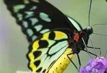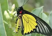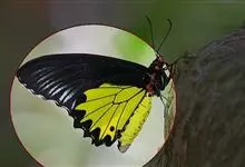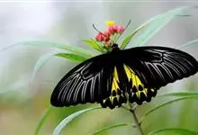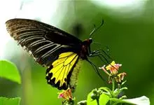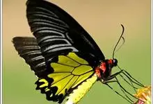 金裳凤蝶是凤蝶科、裳凤蝶属的动物。金裳凤蝶身体呈黑色,头、颈和胸侧有红毛,腹部有黑黄两色相间条纹,雄蝶前翅黑色,具黑天鹅绒光泽,各脉两侧灰白色,后翅金黄色,各室外缘有等腰三角形黑斑1枚,斑内侧有晕,…全部>>