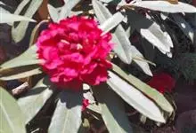 大白杜鹃是杜鹃花科杜鹃花属的常绿灌木,高可达5米。幼枝绿色,无毛;叶厚革质,长圆形或圆状倒卵形,先端钝或圆,基部楔形;总状伞形花序顶生,花序轴疏生白色腺体,花梗粗,具白色有柄腺体,冠宽漏斗状钟形,…全部>>