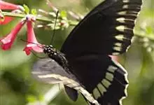 玉斑凤蝶Papilio helenus 别名白纹凤蝶,是凤蝶科凤蝶属美凤蝶亚属大型种类。雌雄同型;体翅皆黑色,后翅正面中室外有3个并列的白色斑,亚外缘有1列模糊的新月形红色斑,…全部>>
