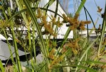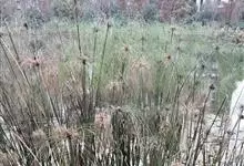 纸莎草是莎草科、莎草属的植物,具有粗壮的根状茎,高达2-3米,茎秆簇生,粗壮,直立,钝三棱形。叶退化呈鞘状,茎秆顶端着生总苞片,呈伞状簇生,总苞片叶状,披针形,顶生花序伞梗极多,细长下垂。瘦果灰褐色,…全部>>