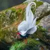 白鹇,是鸡形目雉科鹇属的一种留鸟。雄鸟上体白色并具黑色纹,下体黑色,头顶具黑色长羽冠,尾白而长;雌鸟体型较小,以橄榄褐色为主,下体具白色或皮黄色细纹;虹膜褐色,眼周具红色裸皮,喙黄色,脚鲜红色。…全部>>