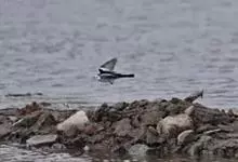 灰背鸥大型水鸟,体长62~69厘米。嘴直,黄色,下嘴先端有红色斑。脚粉红色,头、颈和下体白色,背、肩和翅黑灰色,腰,尾上覆羽和尾白色。冬季头和上胸有褐色纵纹,特别是眼周和后枕较密。飞翔时翅前后缘白色…全部>>