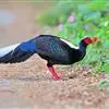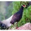 蓝鹇是雉科、鹇属一种大型雉类。体长50-80厘米。雄鸟头颈黑色,羽冠白色,有时杂以黑斑;脸红色,额部肉冠和脸部肉垂亦为红色;后颈和颈侧蓝黑色;肩赤红色;翅上覆羽及外侧次级飞羽黑色,…全部>>