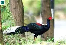 白颈长尾雉:大型鸡类,体长81厘米,体型大小和雉鸡相似。雄鸟头灰褐色,颈白色,脸鲜红色,其上后缘有一显著白纹,上背、胸和两翅栗色,上背和翅上均具1条宽阔的白色带,极为醒目;下背和腰黑色而具白斑;腹白…全部>>