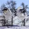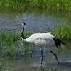 丹顶鹤:是鹤科、鹤属的一种大型涉禽,体长120-160厘米。颈、脚较长,通体大多白色,头顶鲜红色,喉和颈黑色,耳至头枕白色,脚黑色,站立时颈、尾部飞羽和脚黑色,头顶红色,…全部>>