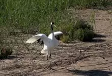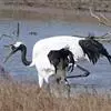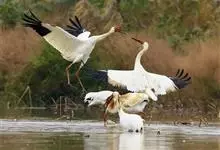 丹顶鹤:是鹤科、鹤属的一种大型涉禽,体长120-160厘米。颈、脚较长,通体大多白色,头顶鲜红色,喉和颈黑色,耳至头枕白色,脚黑色,站立时颈、尾部飞羽和脚黑色,头顶红色,…全部>>