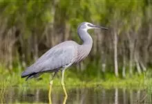 白脸鹭:体长60-70厘米,体重550克。成鸟相对其他鹭科鸟类要小,正如它的名字,很容易通过白脸鹭的蓝灰色身体和独特的白脸来识别。嘴长而尖直,翅大而长,脚和趾均细长,胫部部分裸露,脚三趾在前一趾在后,…全部>>